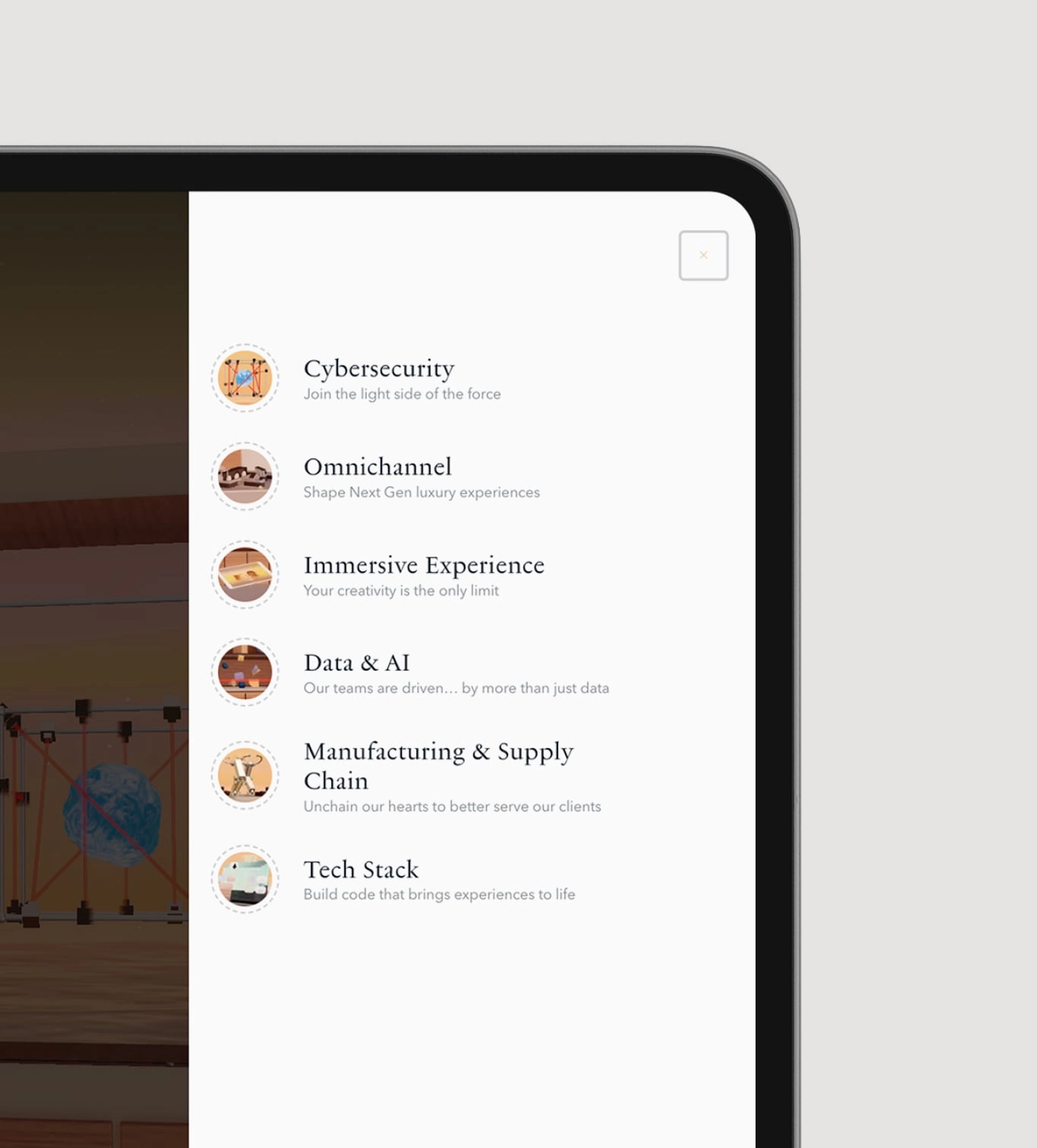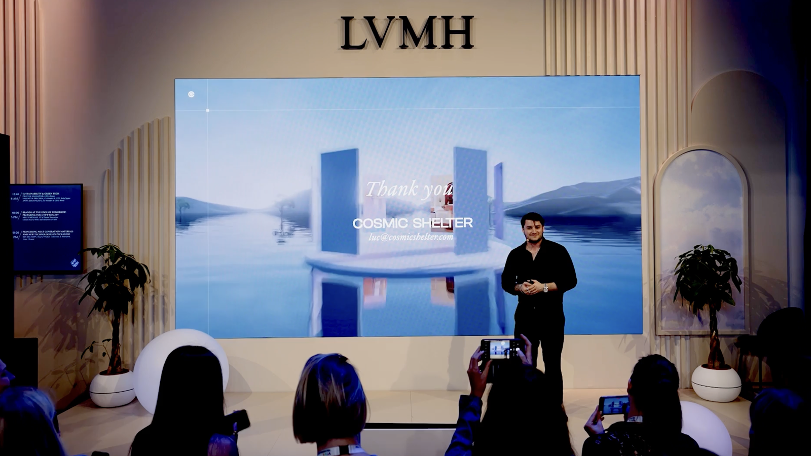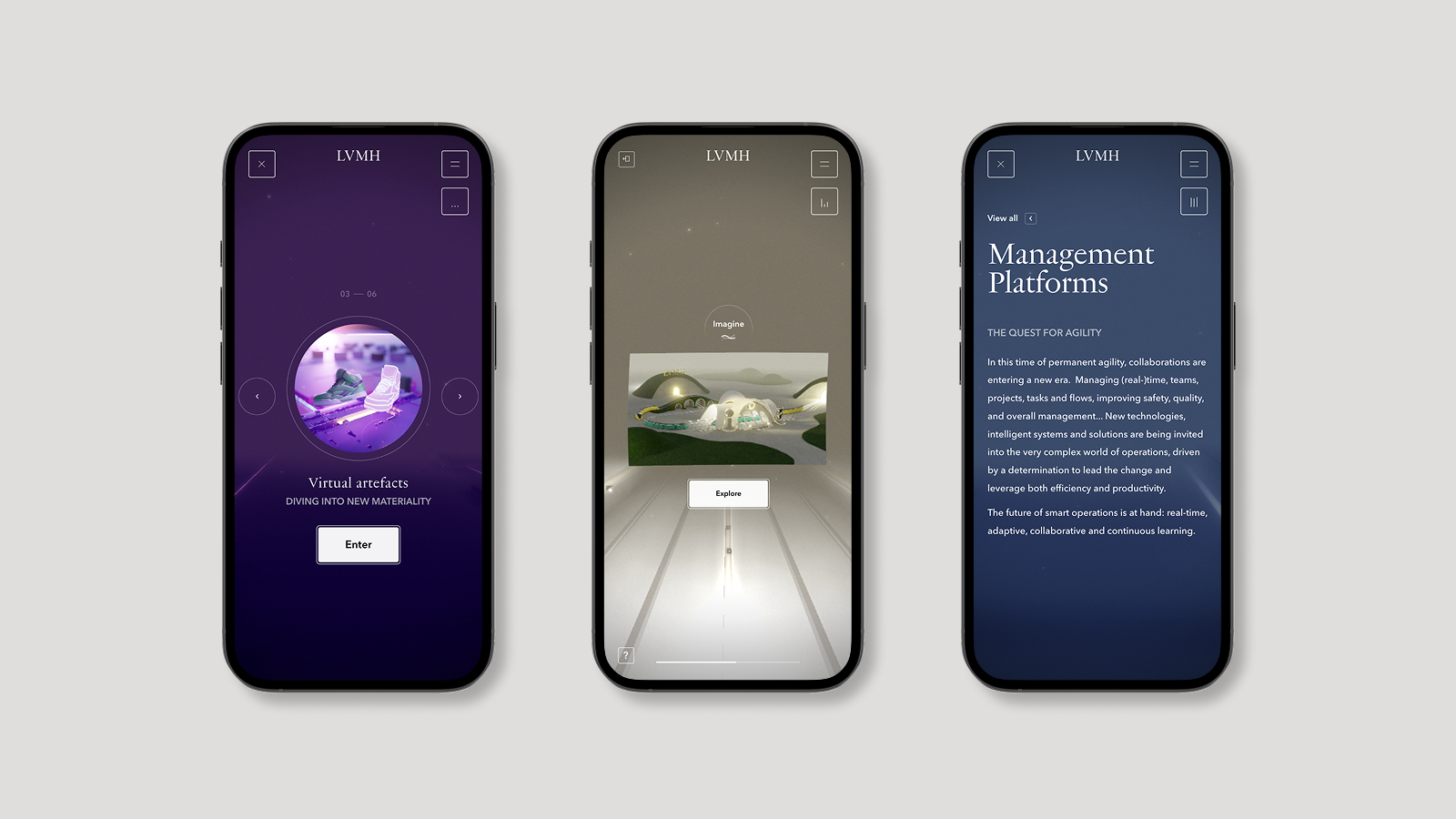 We designed a round platform surrounded by doors, allowing users to navigate fluidly between experiences. Inspired by the spirit of a curated collection, “The Journey” presents each initiative as a unique yet interconnected piece of LVMH’s innovation ecosystem, fostering discovery and exploration.