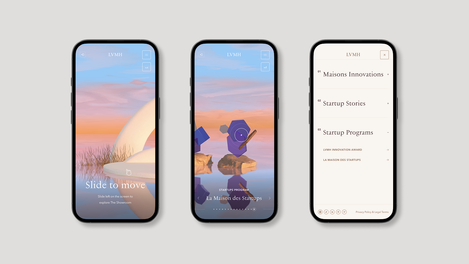 An immersive space highlighting LVMH Maisons’ latest innovations, startup stories, and open innovation programs. Designed as a treasure island, this experience invites users to explore innovations through abstract representations, reinforcing a sense of discovery.
