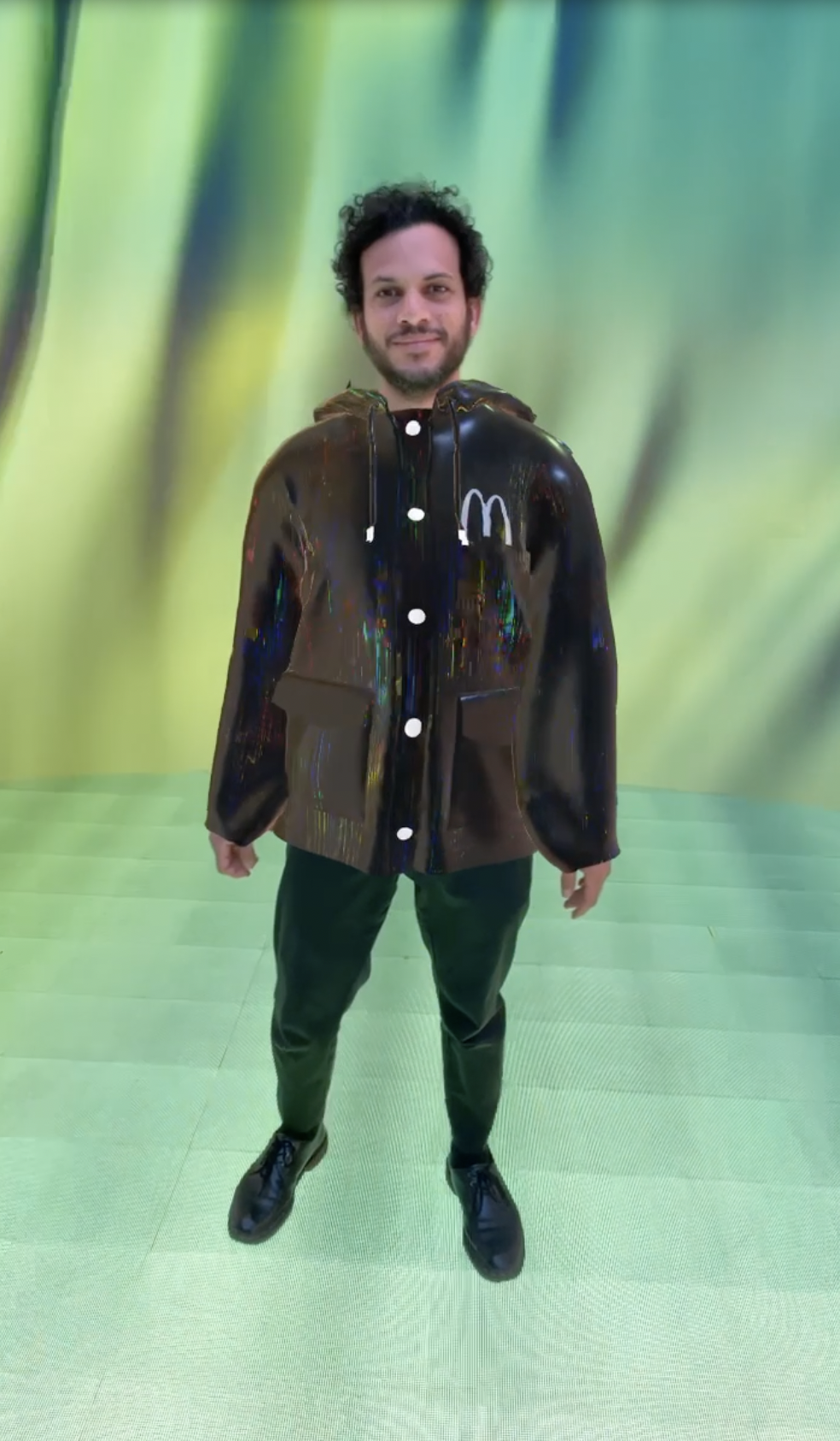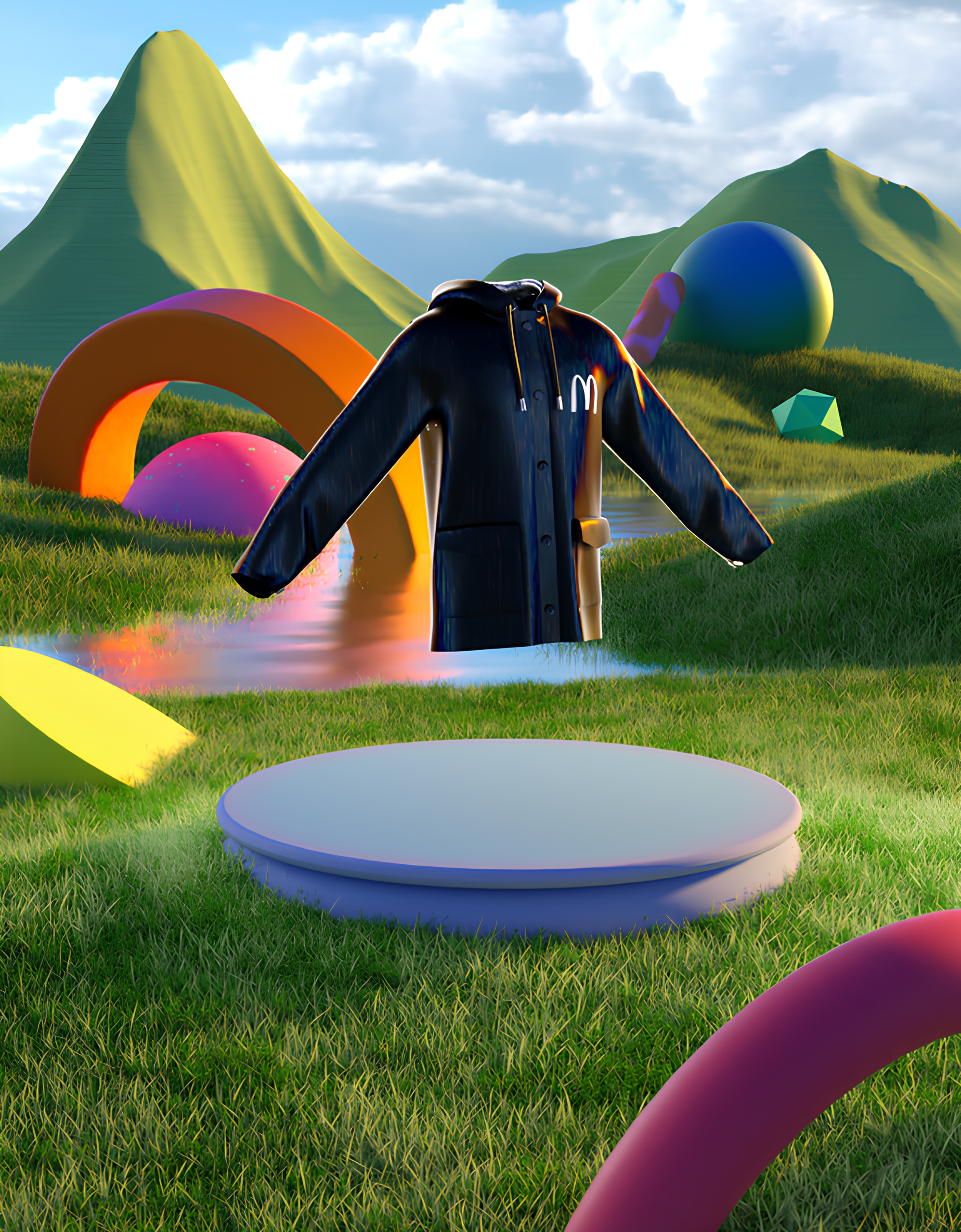 We created McDonald’s France first wearable, a faithful 3D replica of the real jacket, optimized for Decentraland. To boost engagement, we developed an AR try-on filter and a social teaser video. A Twitch live event hosted by influencer Bichou and an Instagram contest allowed users to participate for a chance to win both the physical and digital jacket.